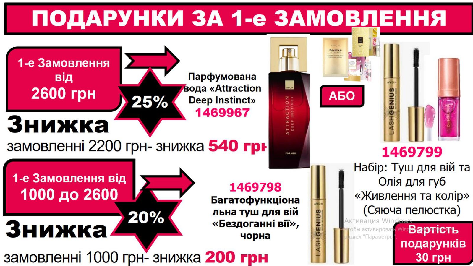 Знижку 25% на кожне замовлення від 1000 грн за цінами Каталогу протягом першої Кампанії з моменту реєстрації.